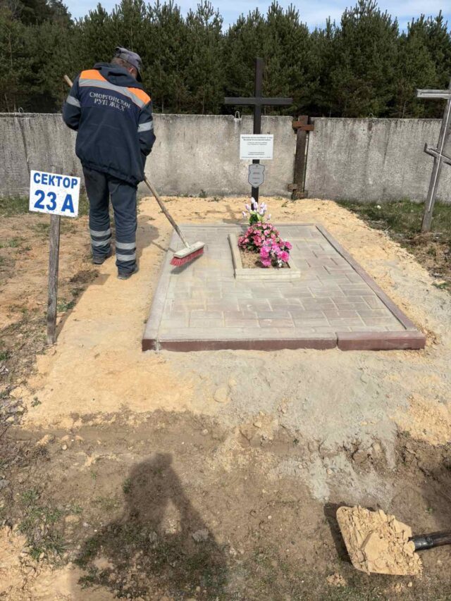 На постоянной основе проводится мониторинг состояния форм увековечивания. Работники участка благоустройства произвели затирку швов и заполнение плитки, а также уборку территории и отсыпку песком по периметру братской могилы погибшим в годы Великой Отечественной войны, перезахороненным на кладбище «Перевесье».