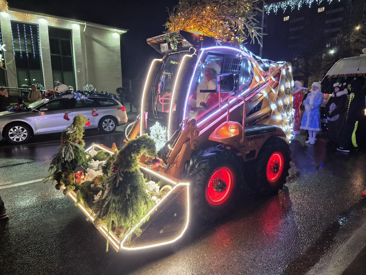 Вечер пятницы 12 декабря собрал на площади города множество сказочных персонажей, детей, гостей мероприятия. Парад-шествие новогодних персонажей и красочных транспортных средств, выход главного героя — Деда Мороза и зажжение ёлки, весёлые песни и неутомимые пляски… Даже моросящий дождик не испортил настроение присутствующим. Кульминацией мероприятия стало награждение за лучший новогодний автодизайн. Никто не остался без диплома.